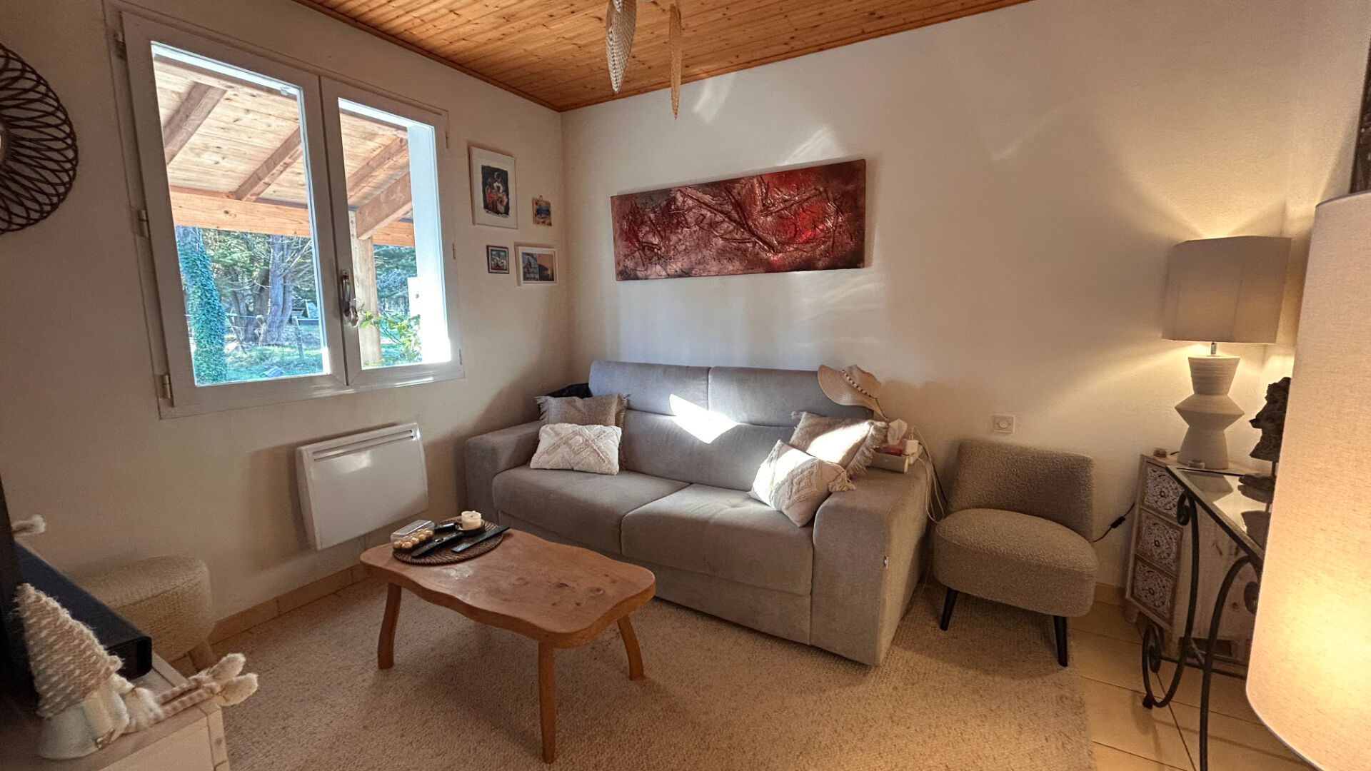 Charmante maison rénovée avec goût, offrant une ambiance chaleureuse et conviviale. Elle se compose de 2 chambres, d'un espace de vie lumineux et fonctionnel avec cuisine aménagée et équipée.
