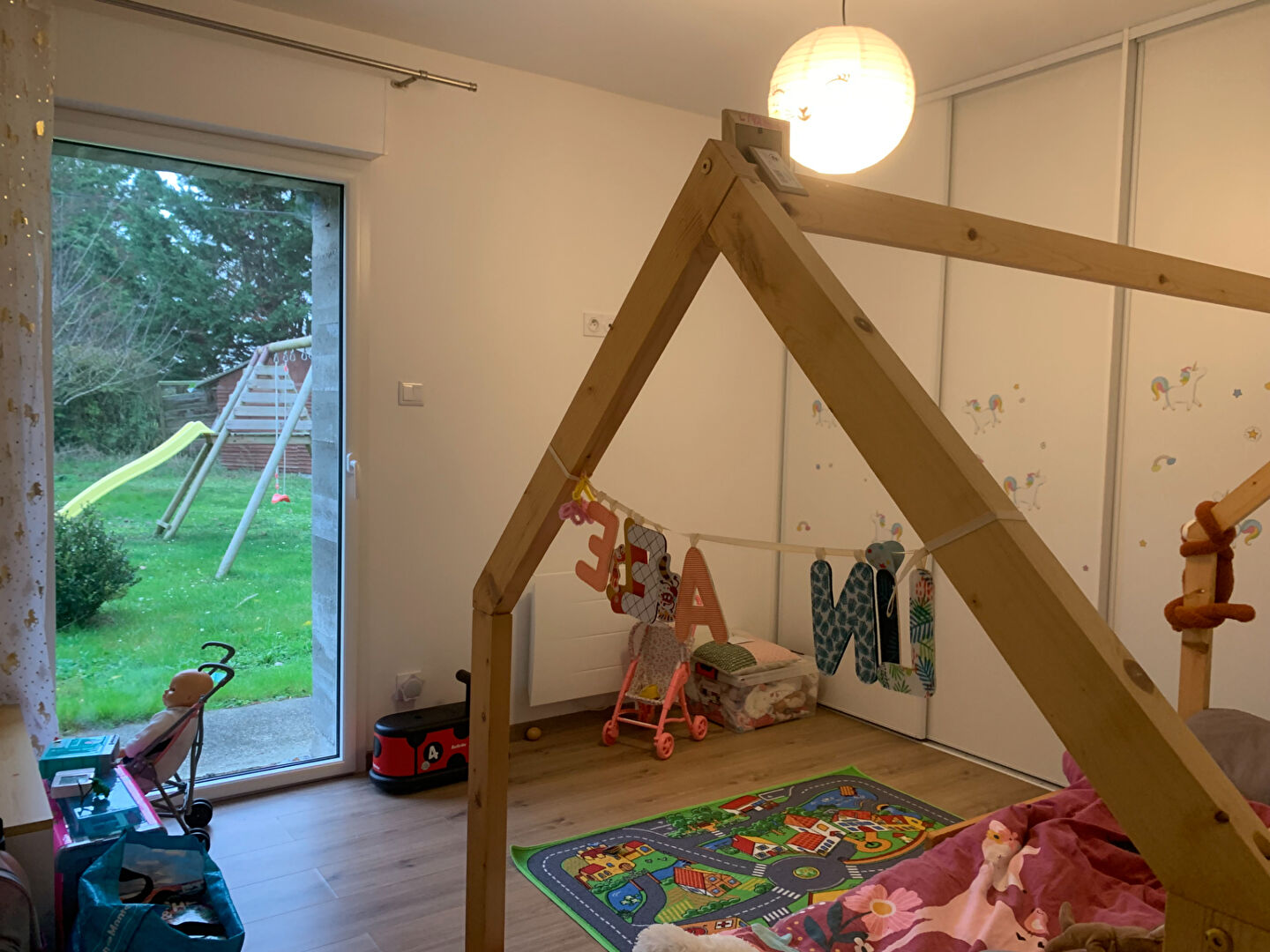A l'extérieur, vous profiterez d'un grand jardin arboré de 1 239 m², idéal pour les moments de détente, les repas en plein air ou les projets d'aménagement paysager.