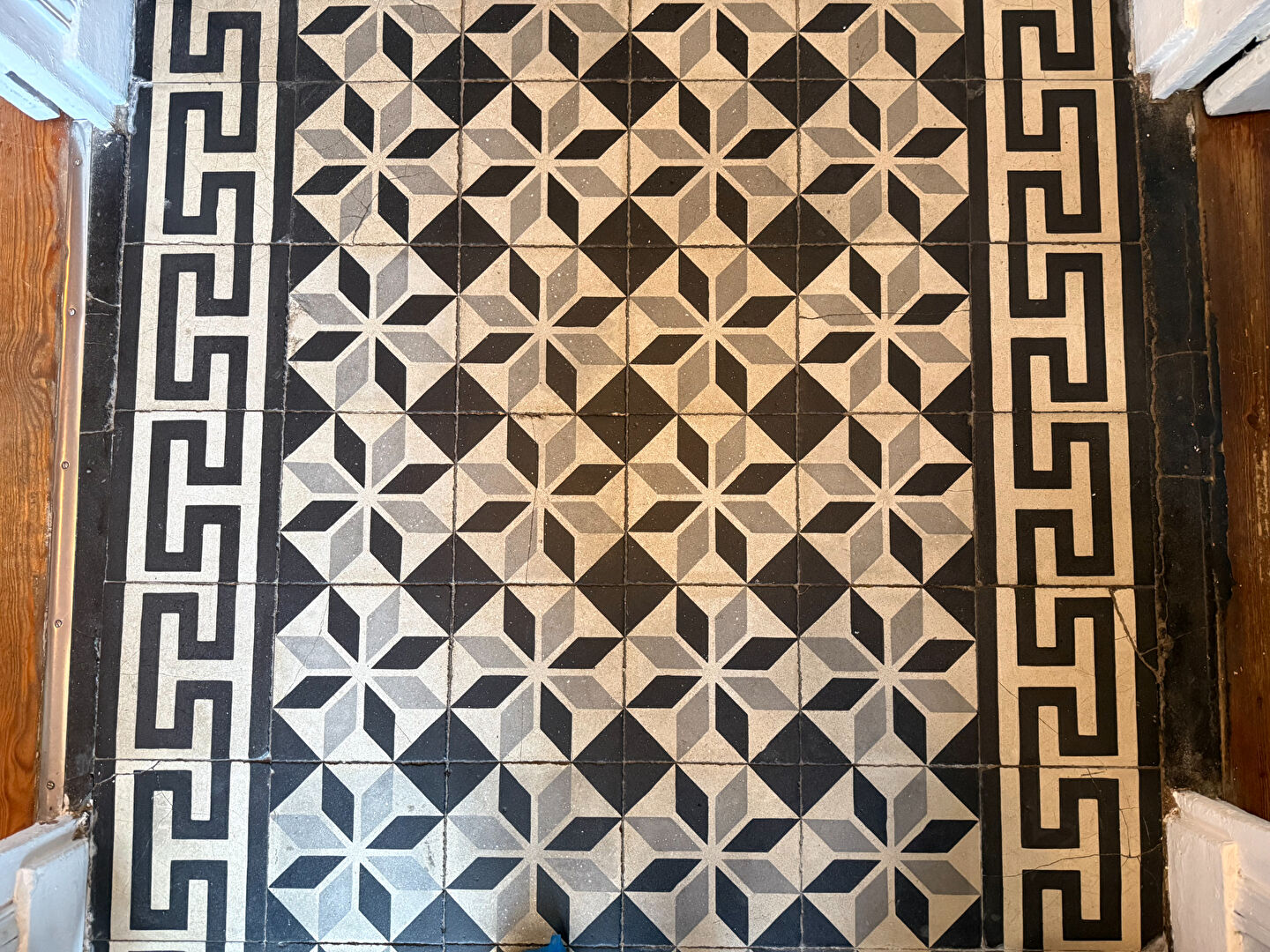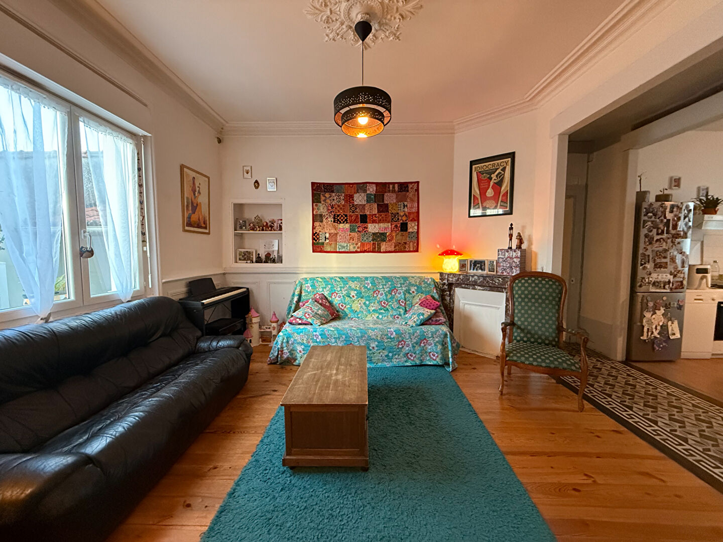 - Parquets, carreaux ciment, portes à panneaux, rosace, belle hauteur sous plafond