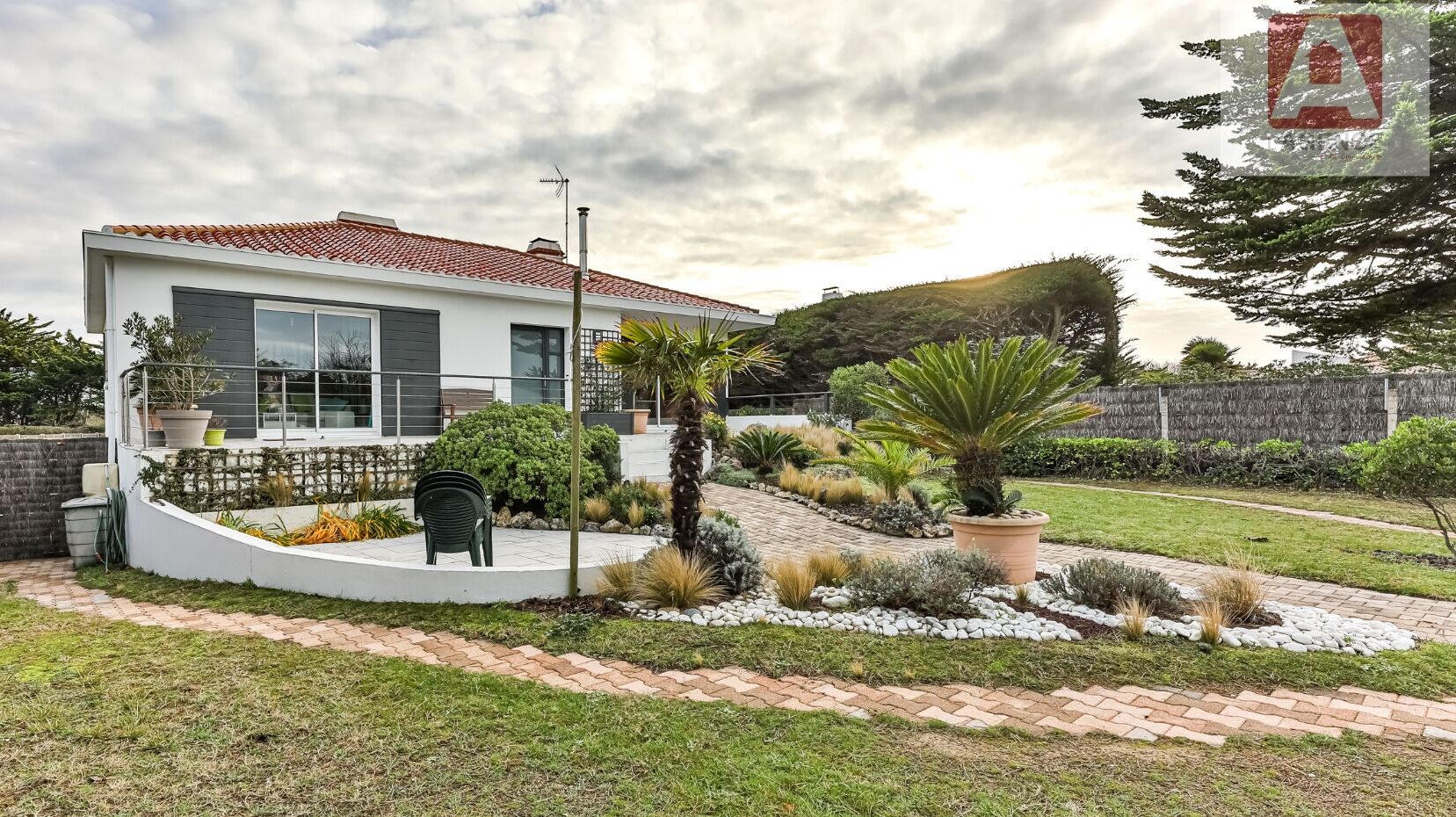 Elle se situe dans un quartier de premier choix à proximité immédiate de la grande plage avec un accès direct sur le Jaunay.