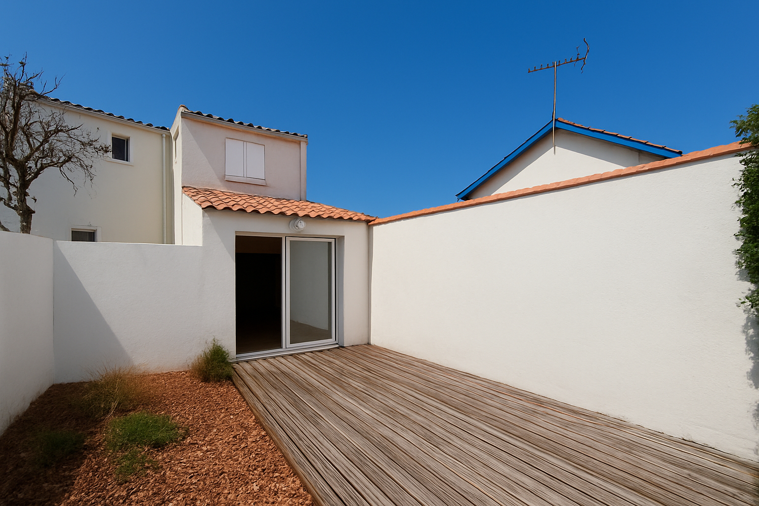 A vendre charmante maison de 55m² idéalement située dans une impasse calme, à seulement 750 mètres de la plage de Boisvinet.